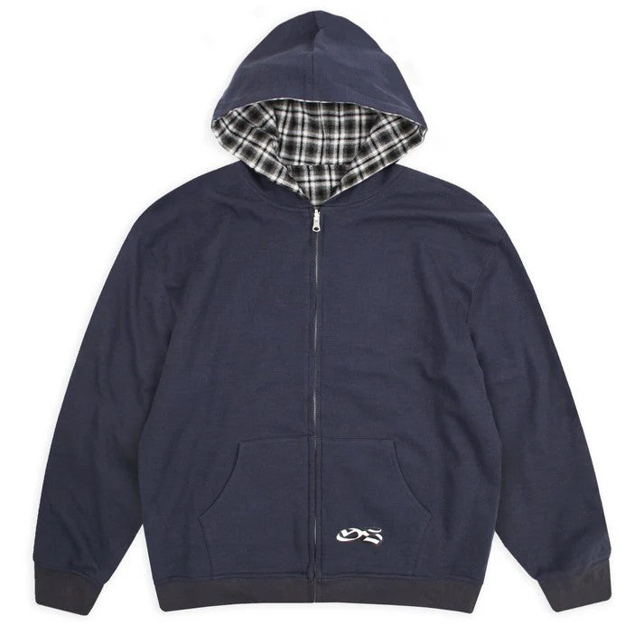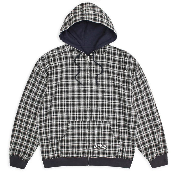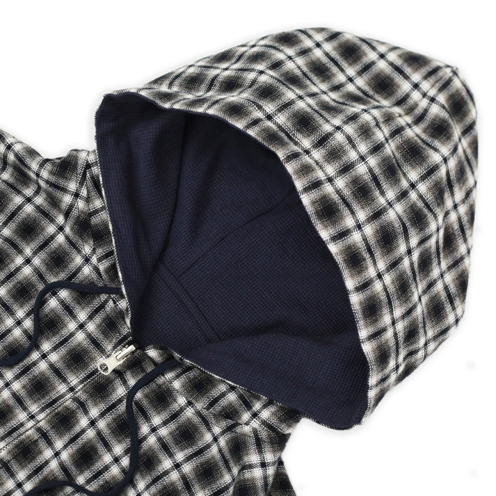 REVERSIBLE FLANNEL HOODIE KHAKI / BLUE